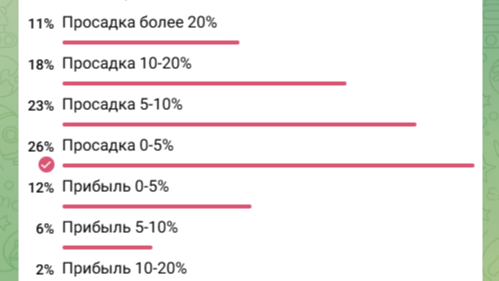 Российский рынок упал до минимальных значений в этом году, уже сейчас индекс Мосбиржи находится ниже 2600 пунктов, и очень вероятно, это еще не предел. Соответственно, инвестиционные портфели у многих покраснели, то есть, ушли в отрицательную доходность. Это, в принципе, нормально: так происходит всегда при сильных падениях или обвалах рынка. Но важен размер просадки. Провел у себя в телеграм-канале опрос о финансовом результате портфеля в данный момент (при индексе Мосбиржи в районе 2600), проголосовали...