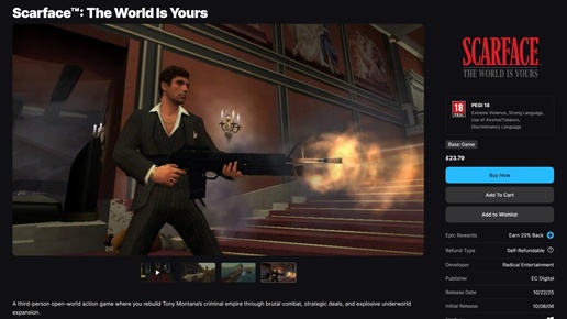 Сегодня HD-ремастер Scarface: The World is Yours внезапно появился в Epic Games Store, вызвав подозрения в его легитимности — что произошло