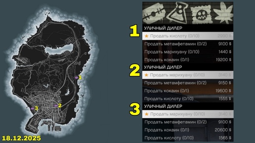 Расположение дилеров в GTA Online на сегодня (18 декабря