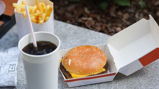 Бывает, что у человека банально нет времени или возможности поесть в нужный ему момент. Поэтому, частенько люди забегают перекусить в фаст-фуд типа "McDonalds" (ныне "Вкусно и точка"). Но всем известно, что если есть в фаст-фудах, то быстро наберешь вес, да и на здоровье может отразиться. На самом деле это не так. Все зависит по большей степени от количество потребляемых калорий. Подробнее про миф об ожирении из-за фаст-фуда рекомендую почитать на канале "Не дай себя обмануть", где автор разоблачает различные фейки и заблуждения...