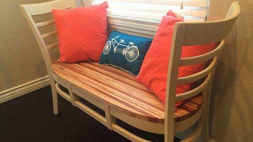 Всем доброго времени суток! Бывает, что остаются старые и никому не нужные стулья, которые потеряли свой вид, истрепалась мягкая обивка, облупилась краска, а может и отломилась ножка. А выбрасывать жалко. Да и не нужно выбрасывать, можно пофантазировать, и сделать из них практичную вещь. Из старых стульев выйдет отличная лавочка для сада, прихожей или даже для кухни. А также маленький диванчик или качеля для ребенка. А еще, можно сделать вешалку или полочку и многое другое...