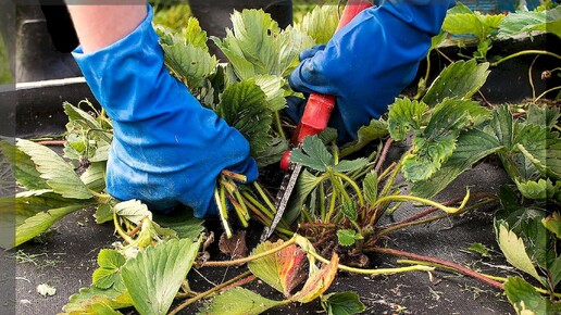 Добрый день, дорогие друзья, садоводы и огородники! Приветствую вас в нашем сообществе "Дачные истории". После завершения плодоношения клубники одной из первых работ должна стать обрезка листьев, пораженных различными пятнистостями. Удалять листья следует на высоте примерно пять сантиметров над уровнем почвы, чтобы не повредить молодые листья, распускающиеся на рожках и становящиеся источником питания для кустика на весь оставшийся сезон. Это правило вычищения клубники не касается кустов первого...