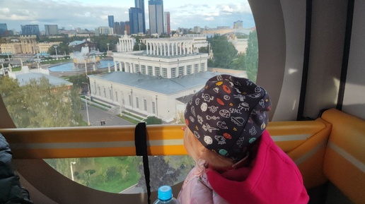 Смотрим сверху на ВДНХ. Просто вау, дочка в восторге!