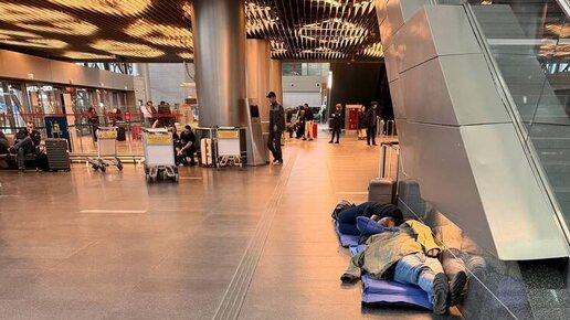 Обстановка во «Внуково»: раздают коврики, предлагают гостиницу