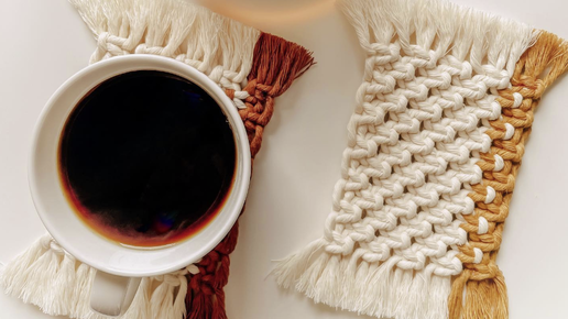 Все наши статьи про макраме здесь. Смотрите уроки по плетению квадратных узлов. Сегодня освоим технику создания ровного плоского полотна с помощью узлов — на примере изготовления декоративной подставки. Разберём ключевые приёмы, тонкости натяжения нитей и способы аккуратной отделки края. Что понадобится Основа для крепления (направляющий шнур) — 2 шт.; Рабочие нити для плетения: слоновая кость — 3 шнура; светло‑голубые — 2 шнура. ! Итого: 10 рабочих шнуров (каждый складываем пополам перед работой)...