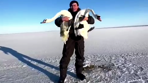 Плакал, прощаясь: животновод спас семью лебедей, вмерзших в лёд (что случилось с ними потом)