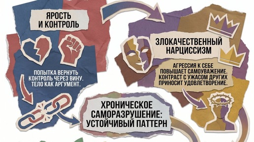 Что стоит за хроническим саморазрушением? Три типа самоповреждающего поведения, их психодинамика, клинические случаи и самодиагностика. Экспертная статья ТФП-психотерапевта, члена ISTFP. — самоповреждение при пограничном расстройстве — суицидальное поведение в психотерапии — аутоагрессия причины и механизмы Хроническое саморазрушение: три мира за одним поведением Содержание Что такое хроническое саморазрушение и почему описательных критериев недостаточно Хроническое саморазрушение — это не эпизод...