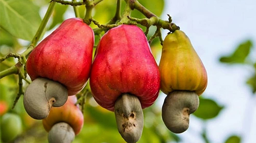 Кешью – теплолюбивое дерево с толстым извилистым стволом и раскидистой кроной. В высоту оно может достигать 15–20 метров. Плоды кешью, по сути, состоят из двух частей: так называемого яблока кешью и ореха. Яблоко кешью – это грушевидная раздутая цветоножка желтого, оранжевого или красного цвета, длиной 7–10 см и около 5 см в диаметре. Это мясистый, очень сочный плод с кисло-сладким вяжущим вкусом. На конце этого яблока находится орех в твердой скорлупе, похожий на миниатюрную боксерскую перчатку, который по мере созревания приобретает темно-зеленый или коричневатый цвет...