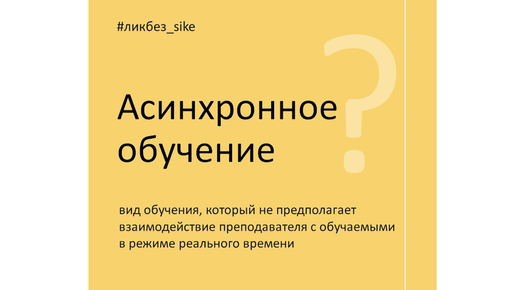 Асинхронное обучение — вид обучения, который не предполагает взаимодействие преподавателя с обучаемыми в режиме реального времени. При асинхронном обучении учащийся может проходить курс и изучать материал в удобное ему время и в комфортном темпе.