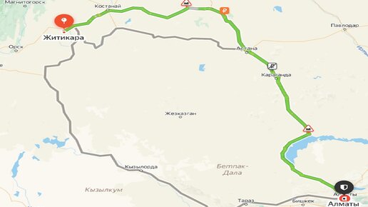 Толком понять, что такое Астана, мы не успели. Покрутились на въезде и выезде на машине, заехали в местный Metro и всё. Видно, что город новый и довольно большой. При этом скорее приятный, но это очень поверхностное впечатление. Поехали дальше в сторону Алматы. Дороги и маршруты. Выезжая из Житикары, мы решили, что поедем через Костанай, Караганду, Астану и Балхаш. Альтернативный маршрут проходил через города с чарующими названиями Кызылорда и Туркестан. Кызылорда -- есть в этом слове что бескрайнее и тысячелетнее...