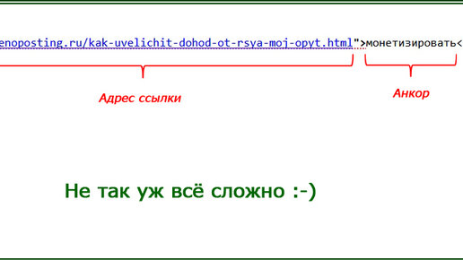 Если вы только приступаете к изучению такой темы как SEO — оптимизация, то очень важно знать как можно больше про ссылки, ссылочное продвижение. Сейчас рассмотрим простой, но очень важный элемент в SEO — анкоры в ссылках, а так же я покажу на примерах так называемые анкорные и безанкорные ссылки. Простым языком, для чайников, так сказать. «Анкор» в ссылке. Что это? Все ссылки в интернете всегда состоят из трёх частей: Как вы уже догадались, если речь идёт о ссылке, то анкор — это текст ссылки. Давайте рассмотрим иллюстрированный пример...