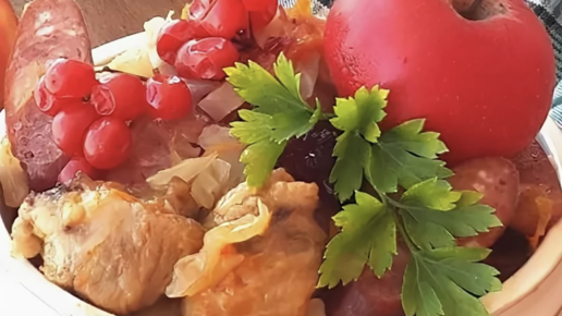 Бигус – традиционное блюдо польской кухни, готовящееся на основе капусты. Существует множество его рецептур, как мясных, так и вегетарианских. Но все они отличаются отменным вкусом и простотой приготовления. Бигус с яблоками и вареньем отличается пикантным кисло-сладким привкусом, придающим блюду неповторимое своеобразие. Для него понадобятся такие продукты: - свинина – 0,5 кг, - капуста свежая – 0,5 кг, - капуста квашеная – 0,5 кг, - охотничьи колбаски – 300г, - морковь – 100г, - помидоры – 100г, - брусничное варенье – 3 ст...