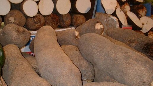 Ямс – важнейшая сельскохозяйственная культура тропических и субтропических стран. Ямс (другое название – четырехлистный батат, кости дьявола, африканский картофель) — растение из семейства диоскорейные. Клубни ямса, достигающие 2,5 метров в длину и весящие несколько десятков килограмм, употребляют в пищу. В тропических и субтропических странах ямс — самая распространенная повседневная еда. Его разрезают, сушат и размалывают, чтобы потом приготовить из муки ароматные лепешки. На вкус — что-то среднее между картофелем и бататом...
