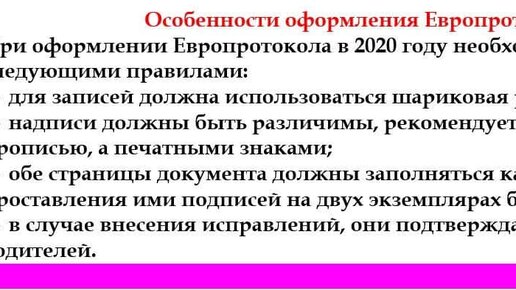 Европротокол – это специальный бланк документа, который позволяет оформить дорожно-транспортное происшествие (ДТП) без вызова сотрудников ГИБДД. Он используется для урегулирования вопросов между двумя участниками ДТП, когда виновник признаёт свою вину. Основной целью составления европротокола является предоставление его в страховую компанию для получения компенсации по ОСАГО. Документ составляется в двух экземплярах, один для каждого участника ДТП. К протоколу необходимо приложить: Оформление европротокола...