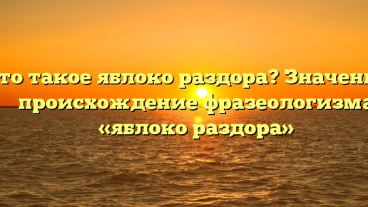 Что такое яблоко раздора? Значение и происхождение фразеологизма «яблоко раздора» Вражда или ссора могут возникнуть как между людьми, так и народами, и государствами. Как правило, без причины они не появляются: обязательно найдет что-то или кто-то, вызвавшие недовольство одной из сторон. В истории известны факты, когда предлогом для начала войны были притязания на чужую собственность/территорию. Например, падением легендарной Трои стал необдуманный поступок пастуха, присудившего золотое яблоко «не той» богине...