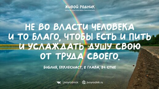 Не во власти человека и то благо, чтобы есть и пить и услаждать душу свою от труда своего. Библия, Екклесиаст, 2 глава, 24 стих