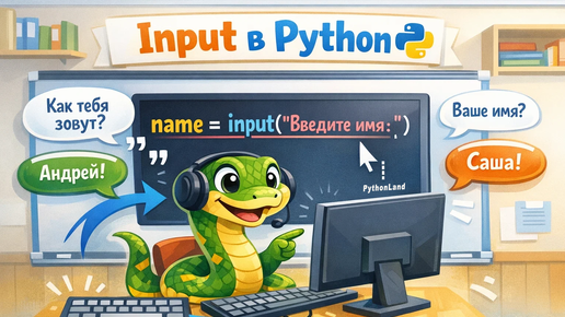 Команда input() позволяет программе общаться с пользователем. Программа задаёт вопрос — человек отвечает.