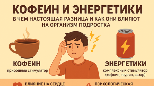 Кофеин и энергетики: в чём настоящая разница и почему подросткам стоит задуматься, что они пьют
