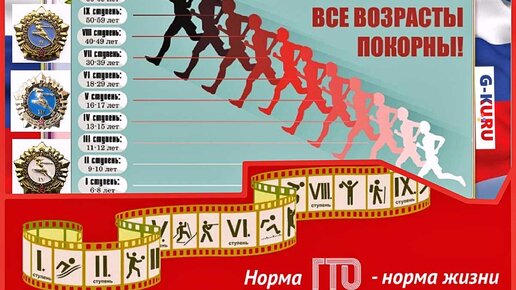 Комплекс ГТО состоит из 11 ступеней в соответствии с возрастными группами населения от 6 до 70 лет и старше