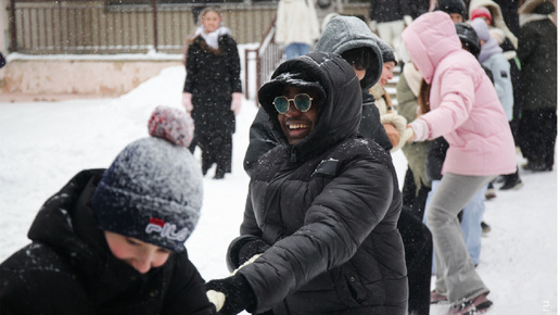 Ученики десятого класса школы №11 в Череповце устроили праздник для иностранных студентов города. На Масленицу пригласили гостей из Китая, Мадагаскара, Индонезии и Таджикистана. Участникам мероприятия рассказали о каждом дне масленичной недели, народных традициях и играх. Вместе с череповчанами иностранцы водили хороводы, перетягивали канат, кидали валенки...
