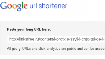 Возьмем адрес этой страницы и он выглядит так linksfree.ru/content/korotkie-ssylki-chto-takoe-i-zachem-nuzhny. После использования сервиса по укорачиванию ссылок эта же ссылка становится такой goo...