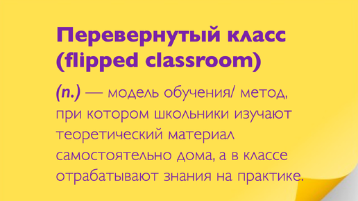 Следующее понятие, в котором мы хотим разобраться в рамках нашей рубрики #smartnotes, — это понятие «перевернутый класс». Что это такое, кто и для чего его «перевернул» — делимся в наших очередных заметках. «Большинство учителей тратят своё время на объяснение материала и доставку знаний, а времени на то, чтобы научить анализировать, оценивать и что-то создавать, тратится мало. “Перевернутая модель” обучения перемещает доставку знаний в личное пространство ученика, а на практические навыки времени...