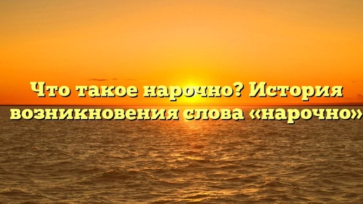 Что такое нарочно? История возникновения слова «нарочно» Слово «нарочно» широко используется в современном русском языке и имеет значение «специально», «с определённой целью». Из данной статьи вы узнаете историю возникновения слова «нарочно». Происхождение слова Каждый человек встречал в литературе или даже разговорной речи слово «ненароком», которое происходит от старославянского слова «нарокъ» – «решение», «намерение». Следовательно, сделать что-либо ненароком – значит действовать без умысла, случайно, невзначай...
