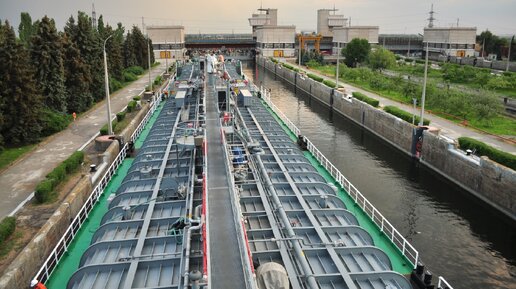 Плотина перекрывает русло реки. Но если она перекрывает русло, то существует существенная разница в уровнях воды, не так ли? Как суда проходят через такие места, если они не могут подниматься и спускаться с холмов, как автомобили? В этих районах есть специальное сооружение-шлюз. Шлюз - это камера, в которую входит судно, и с помощью мощных насосов вода либо откачивается, либо закачивается внутрь, в зависимости от того, что нужно сделать. Такие же технологии используются и в судоходных каналах....