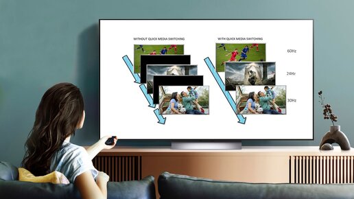 Если вы используете внешний HDMI медиаплеер с функцией согласования частоты кадров, вы могли заметить, что ваш телевизор становится черным на секунду или две до и после воспроизведения видео. QMS призвана решить эту проблему.