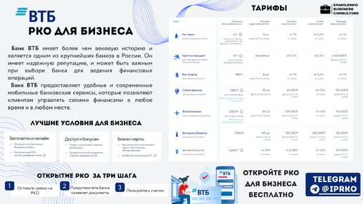 🌟 Откройте РКО в банке ВТБ и получите множество преимуществ! 🌟 📢 Устали от лишних хлопот и дорогостоящих услуг бухгалтера, кадровика и налогового специалиста? Мы здесь, чтобы помочь вам упростить бизнес-процессы и сэкономить ваше драгоценное время! ✅ Бухгалтерский аутсорсинг в одном приложении: Вместо нескольких специалистов, вы получите все необходимые сервисы в одном месте. Просто и эффективно! 💳 Бизнес-карты с моментальным выпуском: Получите виртуальную карту мгновенно и получите карту-компаньон на пластике абсолютно БЕСПЛАТНО...