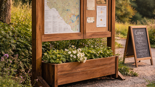 В реальности он решает сразу несколько задач: навигацию, коммуникацию с клиентом, формирование первого впечатления и визуальное позиционирование бизнеса или пространства. Именно поэтому запросы вроде «уличный стенд», «деревянный информационный стенд», «стенд для улицы» стабильно растут — их ищут не из любопытства, а под конкретную задачу. Разберём, что на самом деле подразумевается под уличным деревянным стендом, где он используется и как выбрать вариант, который будет работать, а не просто стоять...