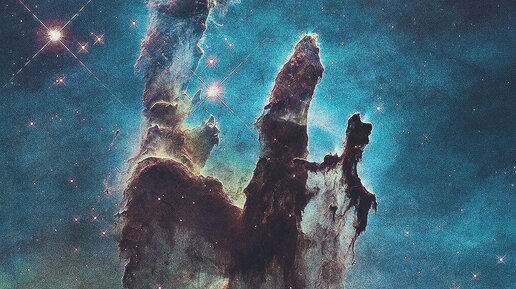 Столпы Творения — это скопления межзвёздного газа и пыли в туманности Орёл, примерно в 7000 световых лет от Земли