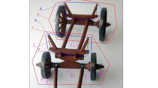 Телега состоит из хода и кузова. Кузова у телег, как правило, самые примитивные, и о них будет отдельный разговор. А сегодня рассмотрим, из чего состоит ход кузова: Хода делятся на разводные (когда можно менять расстояние между передними и задними осями телеги) и неразводные. На рисунке – неразводной ход. На рисунке буквами обозначены: А – задний надосник Б – задний ход В - насад Г – передний ход На рисунке цифрами обозначены: 1 – ручница 2 - контрфорс 3 – грядки (альтернативное название – дроги,...