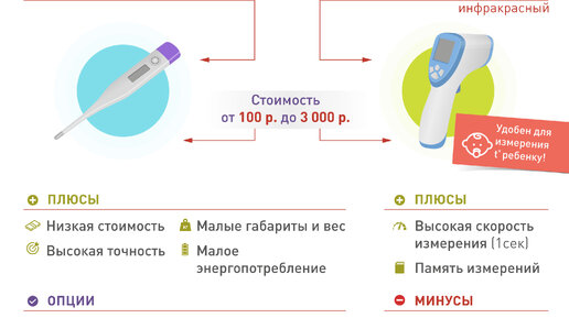 Один из важнейших приборов, который должен быть в арсенале каждой семьи, – термометр. Существуют обычные ртутные термометры, которые отличаются высокой точностью, но при этом хрупки и при падении легко могут разбиться. В связи с этим широкое распространение получили цифровые, или электронные термометры. Их, в свою очередь, можно разделить на два больших раздела – контактные (требующие контакта с кожей) и бесконтактные. Контактный термометр по процессу измерения похож на ртутный, но внутри содержит электронную начинку...