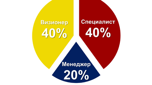Измерение под названием «Три роли лидера» определяет, какую долю времени и энергии Лидер затрачивает на выполнение трёх основных функций или ролей Лидера в организации. Эти 3 роли называются Визионер, Менеджер и Специалист. Визионер понимает, насколько чёткий и убедительный Образ будущего важен для организации. Когда Лидер выступает в роли Визионера, он ведёт организацию к реализации Образа будущего. Помогая сотрудникам увидеть, как ежедневные результаты их работы вносят вклад в общее дело, Лидер обеспечивает для организации поступательное движение в направлении этого Видения...