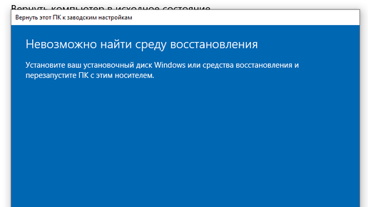 Этот экран сообщает, что Windows не может найти среду восстановления для сброса или восстановления системы. Чтобы переустановить Windows, вам потребуется установочный носитель (диск или USB-флешка). Вот...