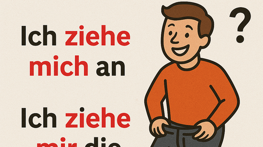 наоборот. Поэтому важно запоминать глаголы вместе с sich или без него. Например: Возвратное местоимение sich может склоняться по двум падежам: Akkusativ — Винительный падеж или Dativ — Дательный падеж...