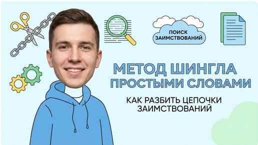 Представь, что твой курсовик — это длинная черепичная крыша. Антиплагиат не смотрит на каждую черепицу отдельно, а проверяет как они накладываются друг на друга. Вот эти «кусочки крыши» из 3-4 слов и есть шинглы. Говоря простым языком, шингл — это последовательность из нескольких идущих подряд слов, которую система запоминает как единый «отпечаток». Антиплагиат разбивает весь текст на такие кусочки, превращает каждый в цифровой код (хэш) и сравнивает с базой. Пример. Возьмём фразу: «Цифровая экономика влияет на развитие общества»...