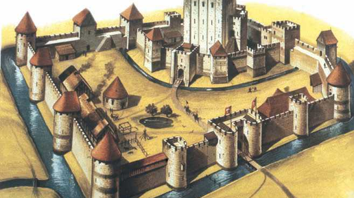 Начиная с VIII века для защиты от нападений норманнов и венгров в Европе было построено немало замков. Постепенно каждый господин старался соорудить себе замок: в зависимости от возможностей — огромный или скромный. Замок — это жилище феодала и его крепость Сначала замки строили из дерева, позднее— из камня. Мощные стены с зубчатыми башнями служили надежной защитой. Замок часто возводили на холме или высокой скале, окружали широким рвом с водой. Иногда его строили на острове посреди реки или озера...