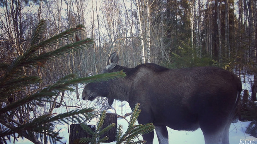 лоси в конце зимы голодают настолько, что теряют осторожность, и подходят близко к домам - ищут веточный корм