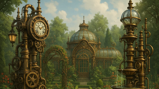 Представьте сад, в котором нежные вьющиеся растения оплетают латунные трубы, а среди зелени прячутся медные шестерёнки, фонари на высоких ножках-штативах и загадочные механизмы, будто поднятые со страниц фантастического романа. Такая атмосфера способна перенести в альтернативный XIX век, где будущее построено на паровых машинах, где воздух наполнен духом приключений, а каждый предмет часть большого механического мира. Это и есть сад в стиле стимпанк, дерзкое переплетение природы и индустриальной эстетики...
