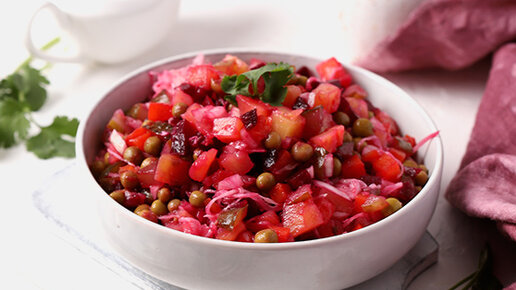 У винегрета есть несколько вариантов с разными ингредиентами, но классический рецепт, а заодно и самый популярный, — с добавлением зеленого горошка, соленых огурцов и квашеной капусты. На вкус салата во многом влияет заправка: она может быть только масляной или уксусно-масляной, с добавлением горчицы, меда и разных специй — вариантов множество. Справка: «Ура! Повара» — первый в России портал с рецептами от шеф-поваров, экспертными статьями и кулинарной онлайн-школой. Наш девиз — «Мы научим вас готовить!»...