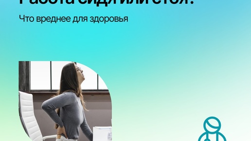 Работа сидя или стоя: что вреднее для здоровья? Многие стремятся заменить сидячую работу на работу стоя, думая, что она менее вредна. Для офисных работников даже придуманы высокие столы, чтобы работать не сидя. Но правда в том, что обе крайности могут быть не полезны — вопрос в продолжительности и отсутствии движения. Сидячая работа: скрытые риски - Замедляется обмен веществ - Повышается риск сердечно-сосудистых заболеваний - Увеличивается масса тела - Появляются боли в спине, шее, нарушается осанка Сидеть часами без движения — вредно...