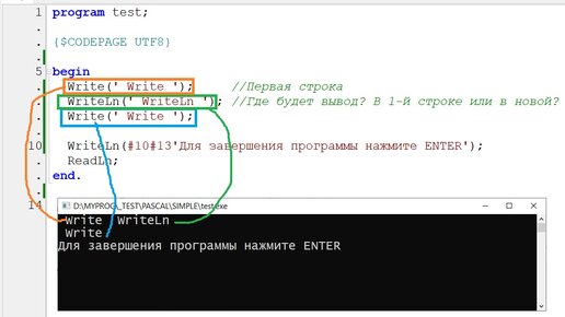 Всегда считал, что функция WriteLn в Паскале СНАЧАЛА выводит данные, а ПОТОМ переводит курсор на новую строку. Но тут в одной книге, рецензентами которой являются два профессора, прочитал, что на самом деле всё наоборот - сначала выполняется перевод строки, а потом - вывод данных: То есть по словам автора, функция WriteLn СНАЧАЛА переводит строку, а ПОТОМ выводит данные (ну а как ещё трактовать выражение “выведет значение выражения с начала новой строки”). Вот же ж блин! Вся жизнь промелькнула перед глазами! Неужели за 20 лет я этого не заметил? Даже засомневался, и решил проверить...