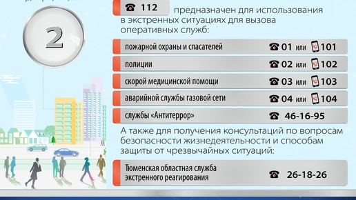 Порядок использования единого номера вызова экстренных служб «112» Номер «112» в России предназначен для использования в экстренных ситуациях, для вызова следующих оперативных служб: - пожарной охраны; - службы реагирования в чрезвычайных ситуациях; - полиции; - скорой медицинской помощи; - аварийной службы газовой сети; - службы «Антитеррор». А также для получения консультаций по вопросам безопасности жизнедеятельности и способам защиты от чрезвычайных ситуаций. Ежедневно сотрудниками Центра...