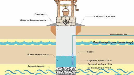 Донный фильтр - это система очистки воды в колодце, состоящая деревянного щита из дуба или лиственнице (эти породы дерева используют потому что они не гниют в воде), а сверху засыпают твёрдые породы не растворяемых минералов. Какие функции выполняет донный фильтр? На какие колодцы ставиться донный фильтр? Далеко не на все колодцы требуется установка донного фильтра. Там где глиняная почва и вода бьёт ключом устанавливать фильтр НЕЛЬЗЯ!!! Так как он может перекрыть доступ к ключу и колодец не будет наполняться...
