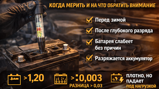 Плотность аккумулятора: что показывает и когда имеет смысл измерять, чтобы не купить новый зря