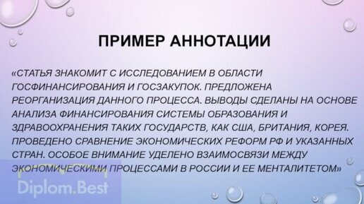 Что такое аннотация? Это краткое изложение ключевых аспектов исследования или статьи, представленное в форме краткого текста. Ее цель — предоставить читателям обзор содержания работы, чтобы они могли быстро понять ее основные идеи и значимость. Оформление аннотации Существуют различные виды аннотаций в зависимости от их структуры, содержания и объема. По содержанию аннотации можно классифицировать следующим образом: Оформление аннотации Эти виды аннотаций помогают слушателям быстро понять, чем конкретно является текст или научное исследование, и определить, соответствует ли он требованиям...