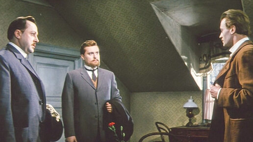 Вот представьте себе, что за Вашей женой начинает ухлестывать какой-то крендель. Пишет ей страстные послания, и даже дарит дорогую вещь. Между прочим, из-за подобных писем герцог Доверкорн чуть не разорвал помолку с леди Евой Брэкулл, и легкомысленную вертихвостку спас только Холмс, вломившийся в логово шантажиста Милвертона. Вообразите себе, что у Вашей жены появилась красивая изящная побрякушка, которую преподнес другой человек. Как вы к этому отнесетесь? Олег Валерианович Басилашвили прекрасный актер...