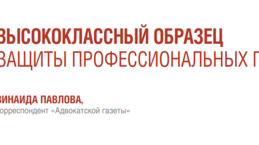 ВЫСОКОКЛАССНЫЙ ОБРАЗЕЦ ЗАЩИТЫ ПРОФЕССИОНАЛЬНЫХ ПРАВ
